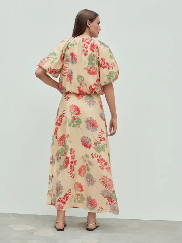 Ecru/Red Floral Print Bubblehem Lightweight Puff Sleeve