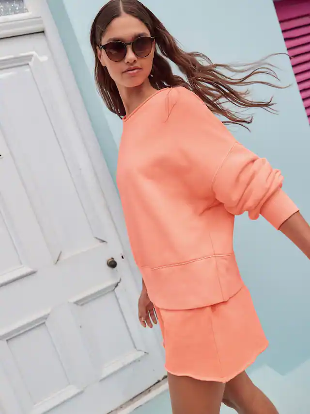 Fluro Orange Raw Hem Detail Washed Cotton Crew Neck